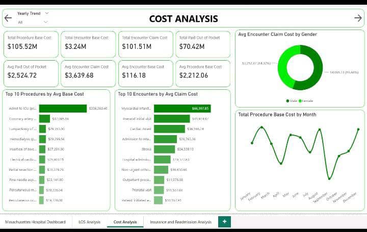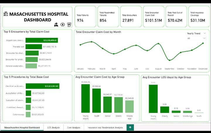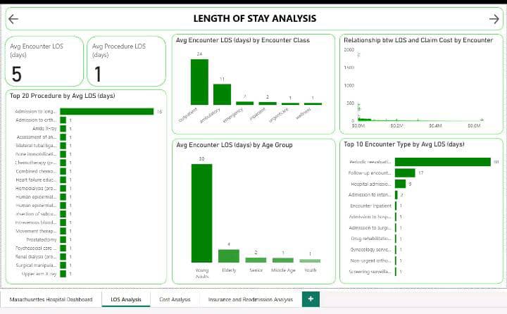 The analysis covers patient demographics, readmission patterns, length of stay, procedure costs, and insurance coverage gaps. It also examines how these factors affect patient outcomes, hospital efficiency, and overall resource utilization, with the goal of identifying high-risk groups, cost drivers, and areas where care delivery can be optimized. The approach involves a structured workflow beginning with comprehensive data cleaning and preparation to ensure consistency and accuracy across the dataset.